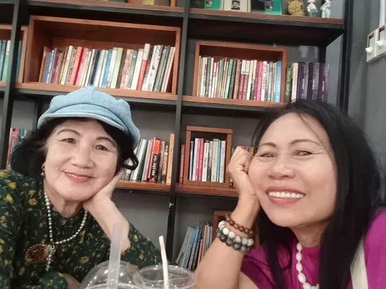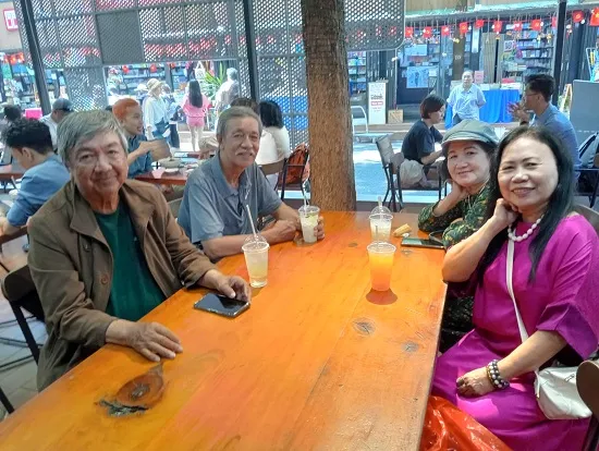 Sáng uống cà phê Thức bên quận 4, gần đến trưa mà nhà thơ Liên Tâm chưa muốn về. Cũng phải thôi vì cô là người Phan Thiết lâu lâu mới vào Sài Gòn đi cho thỏa chí. Kiều Huệ tuy ở tuổi cổ lai hy nhưng tinh thần như thiếu nữ, nghe đi chơi là hưởng ứng liền. Thế là hai ông già cũng mạnh khỏe theo làm xe ôm đưa hai nàng tới đường sách.