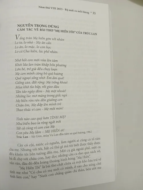 Đọc bài viết của nhà văn, nhà báo Nguyễn Trọng Dũng cảm tác về bài thơ “Mẹ hiền tôi” của Trúc Lan đã cho tôi ” ra chiều suy nghĩ ”