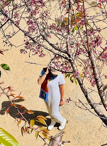 Người ta nói mai anh đào là món quà của cao nguyên. Còn với tôi, được đứng dưới tán hoa này chính là một món quà của cảm xúc. Được thong dong dưới cội hoa già, dường như mọi bộn bề đều ở lại phía sau, chỉ cần im lặng và ngắm nhìn là đủ để thấy lòng ấm áp, quên hẳn mọi huyên náo của thế gian