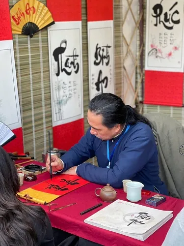 Bày mực tàu, giấy đỏ