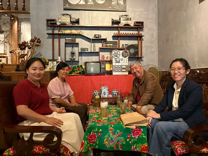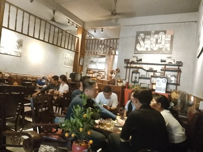 Về quê ăn tết lên thành phố, tôi được  các cháu văn phòng Bộ Tài Chính rủ uống cà phê tại quán Sài Gòn Xưa, 22A Trương Định, quận 3 cũ. Quán chưng bày theo lối cũ của những năm 1960, chủ yếu là đồ gia dụng như máy thu băng, đèn măng xông, ghế bàn gỗ, ảnh và báo xưa. Quán khá đông khách và giá thì không rẻ.