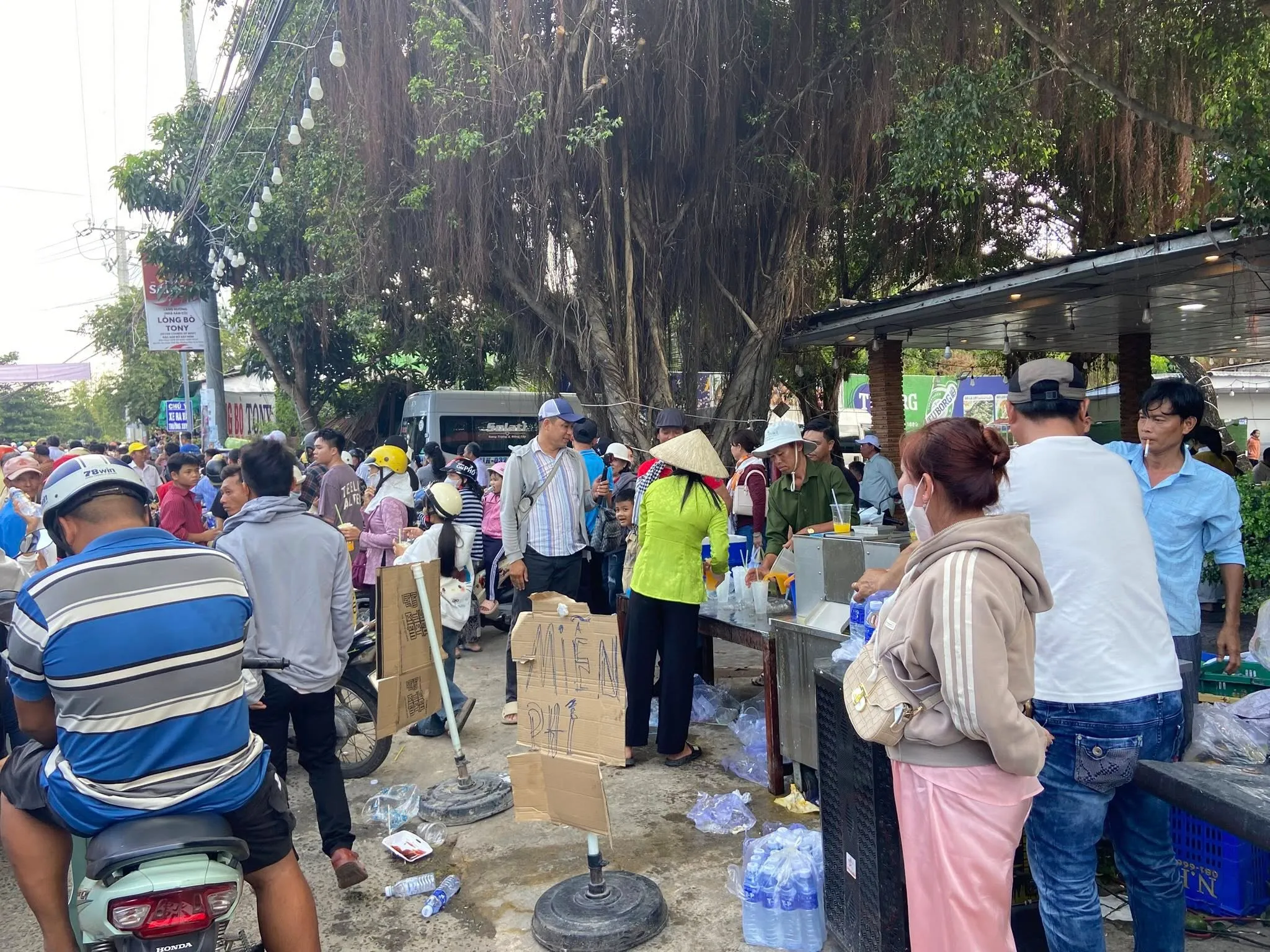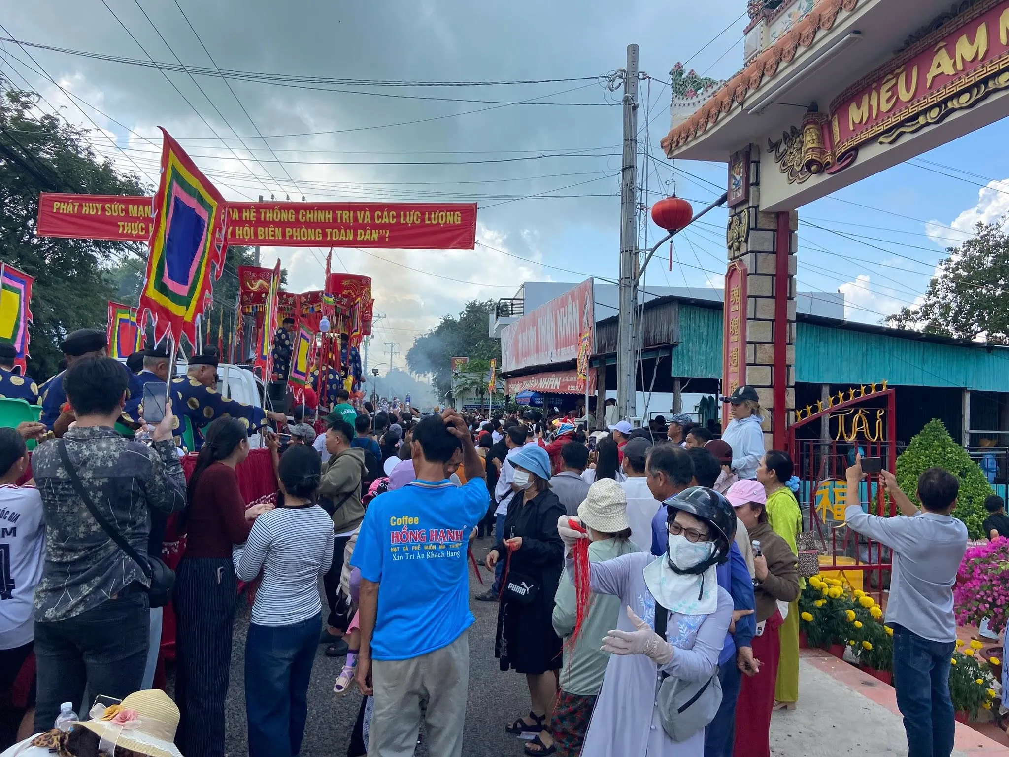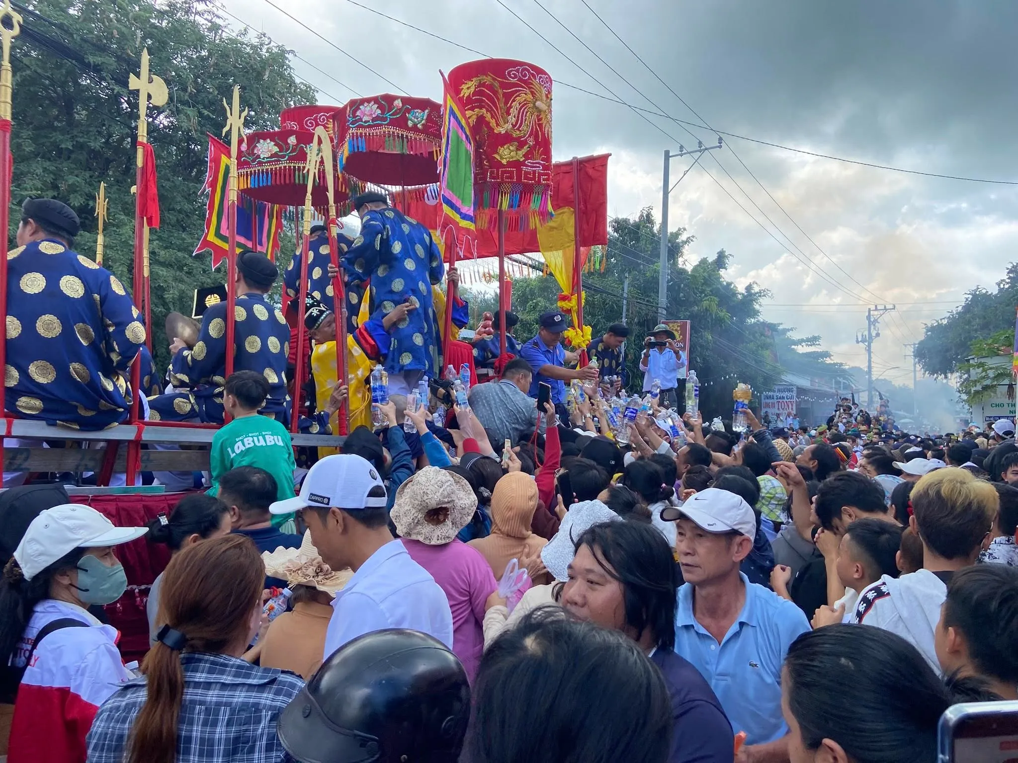 Dân chúng hai bên đường đã bày sẵn trước nhà những bàn hương án, trên có nhang đèn hoa quả và đặc biệt là những bọc gạo muối lớn, rất nhiều chai nước.