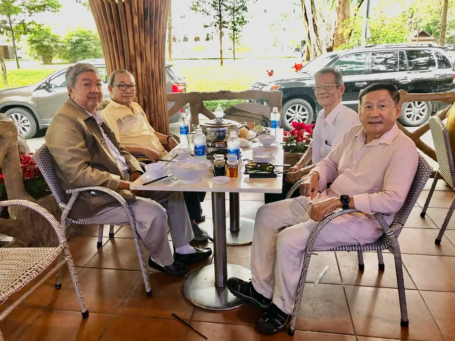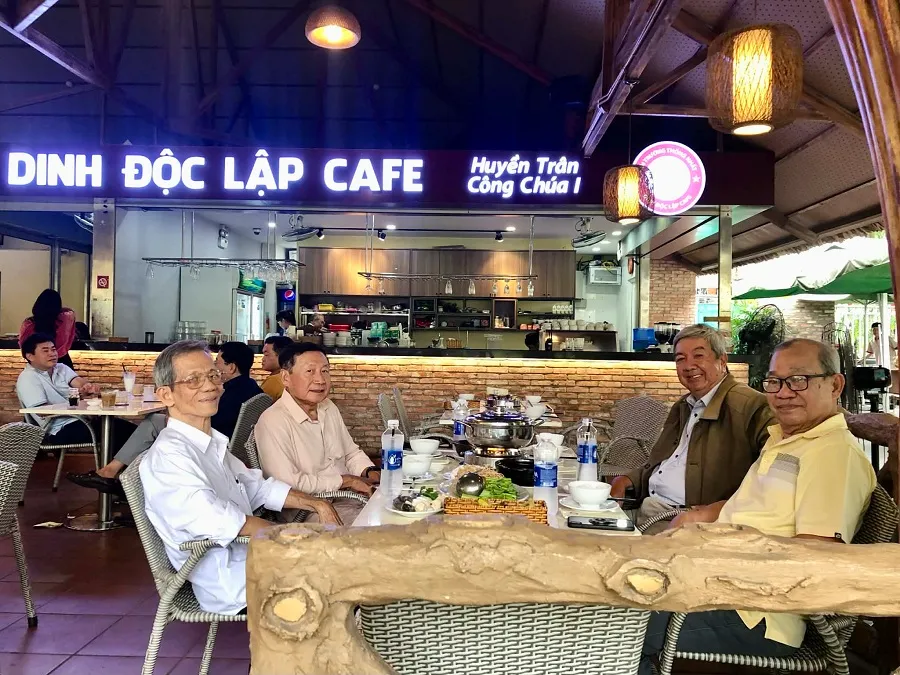 Sau khi trò chuyện khoảng 120 phút, bốn lão già cũng bắt chước các nữ khách ăn uống trong Dinh, ra ngoài chụp hình kỷ niệm.