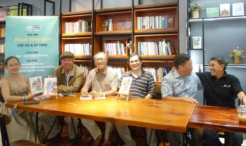 Sáng 11/4, buổi gặp mặt độc giả và ký tên cho hai cuốn sách mới “Lãng khách Chợ Ga” và “Bát tiên xóm Con Chuột” diễn ra khá đầm ấm. Đang lúc trời nóng, ai cũng bận việc riêng nên những ai dành thời gian đến dự tôi đều ghi nhớ và cám ơn. Cám ơn các bạn nhà báo Lê Thiếu Nhơn, Trần Hoàng Nhân, Phương Huyền, Như Thuần… Có mấy bạn trẻ bên báo Thanh Niên, báo Phụ Nữ TPHCM, Znews đến phỏng vấn nhưng tôi bận ký tên nên đành hẹn lúc khác. Nhà báo Lê Đức Dương từ Nha Trang vào, nhà báo Lương Minh từ Hóc Môn đi xe máy đến. Có chị Mai Đỗ, chị Kiều Phương, em Khuyên Đặng, Đoan Khương… và em Ngọc Châu quen từ lần ký tên trước.